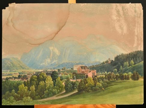 Thomas Ender (1793-1875), a view of a town in a Continental valley, watercolour, signed, 11" x 15.5", (28 x 39cm), (unframed), A/F.