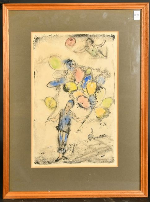 Arturo Peyrot (1908-1993) Spanish, balloon seller, watercolour possibly over a print base, signed, 18" x 12", (46 x 30cm).