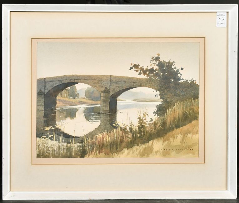Albert E. Hurst, 'Ribchester Bridge', watercolour, signed and dated '83, Blackburn Artists Society label verso, 9.25" x 13.75", (23.5x35cm).