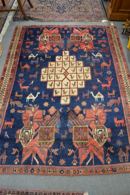 An unusual modern Persian carpet, decorated all over with birds and animals 205cm x 150cm.