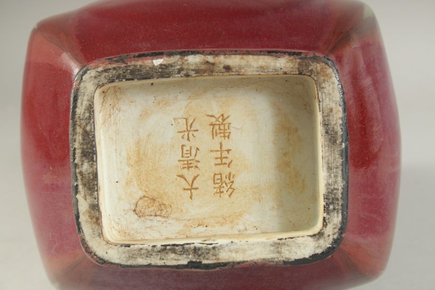A CHINESE IRON RED GLAZE TWIN HANDLE VASE, 30cm high.
