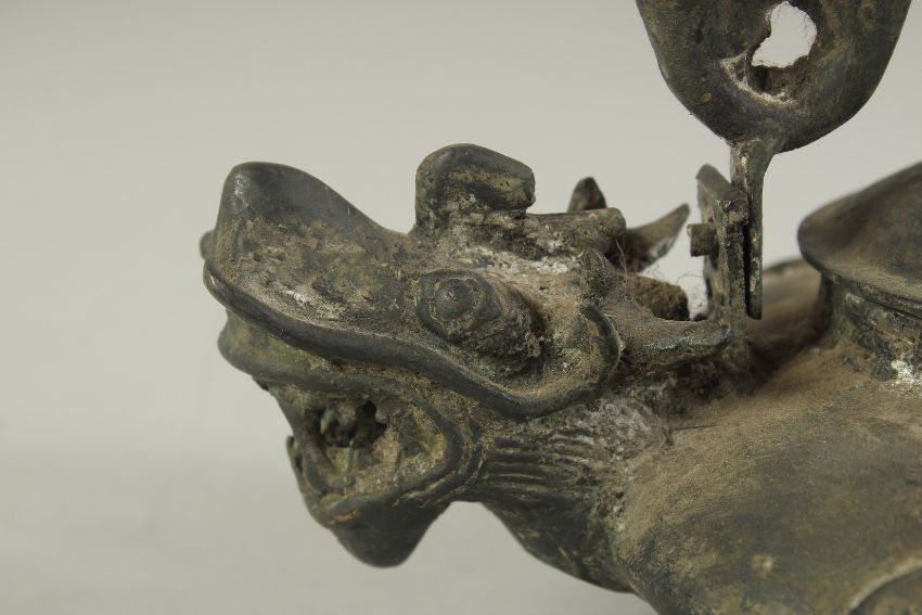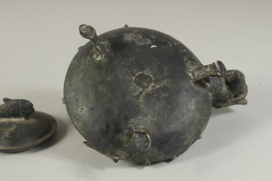 AN UNUSUAL CHINESE DRAGON FORM TEAPOT, the lid with fish shape finial, 19.5cm wide (spout to handle).