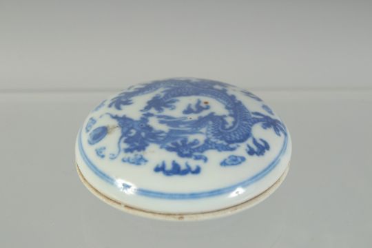 A SMALL CHINESE CIRCULAR PORCELAIN EROTIC BOX.