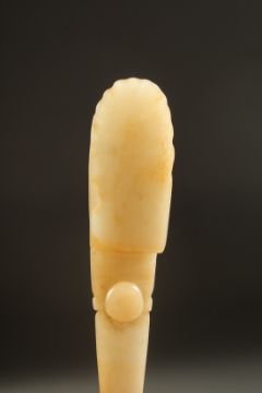 A CHINESE JADE BELT HOOK, 12cm long.