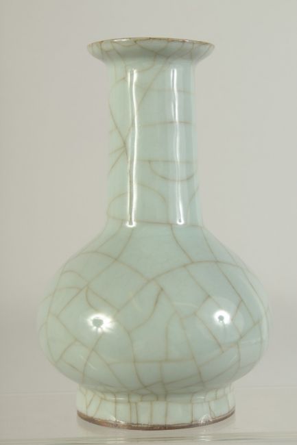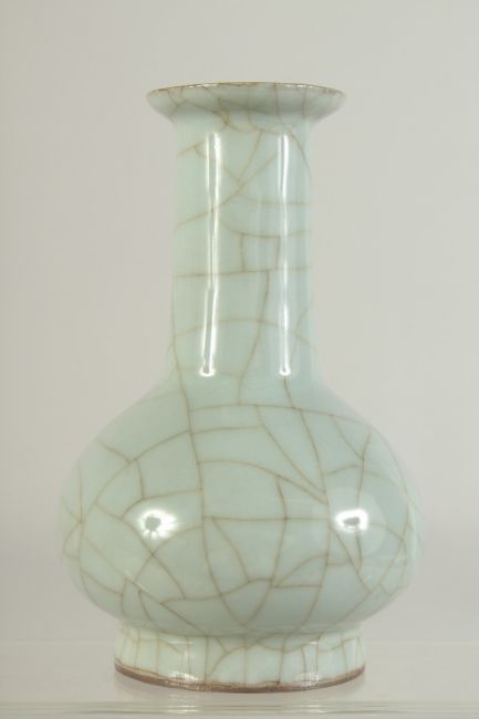 A CHINESE CELADON CRACKLE GLAZE VASE, 17cm high.