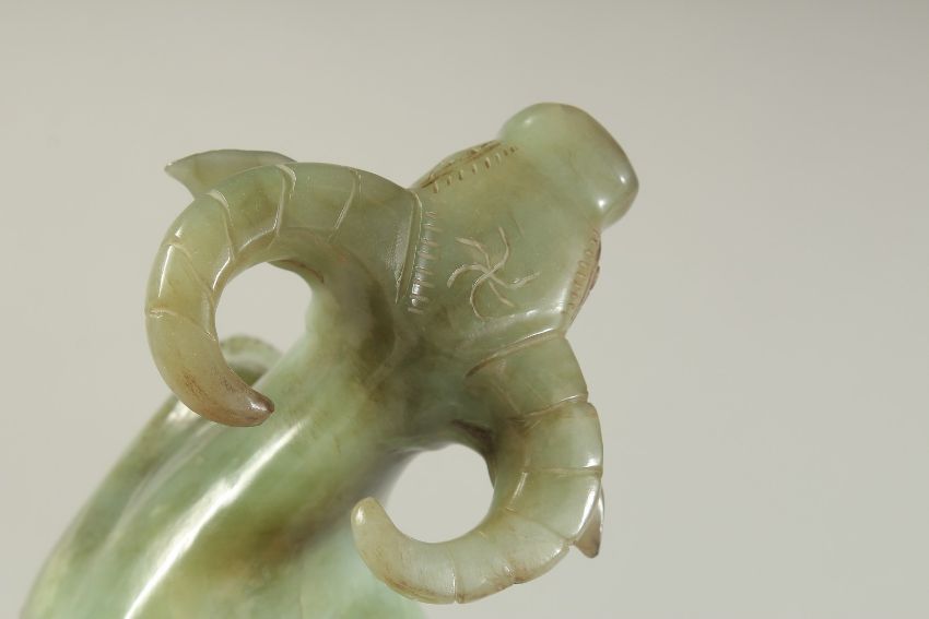 A LARGE CHINESE CARVED JADE BULL, 21cm long.