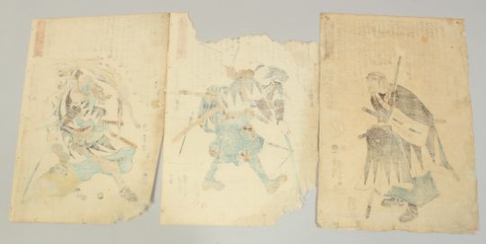 KUNIYOSHI UTAGAWA (1797-1861): THE STORIES OF THE TRUE LOYALTY OF THE FAITHFUL SAMURAI SERIES, 1847-1858; three original Japanese woodblock prints, (3).