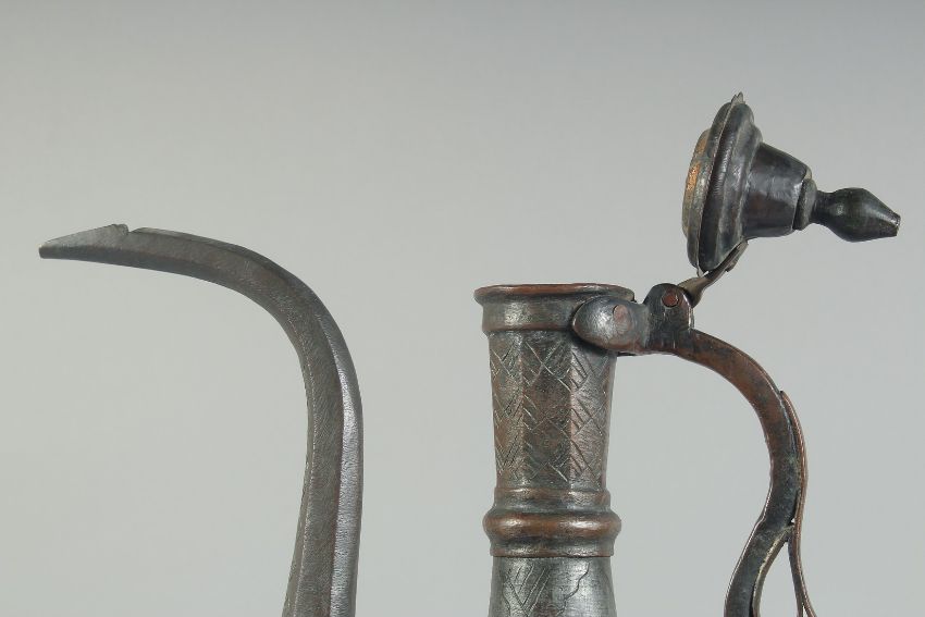 A LARGE ISRAELI TINNED COPPER EWER, 55cm high.