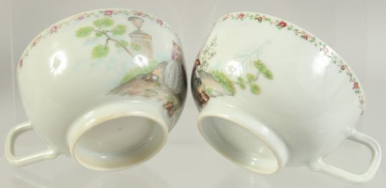 A PAIR OF FAMILLE ROSE PORCELAIN CUPS, with European subjects, cups 8.5cm diameter.