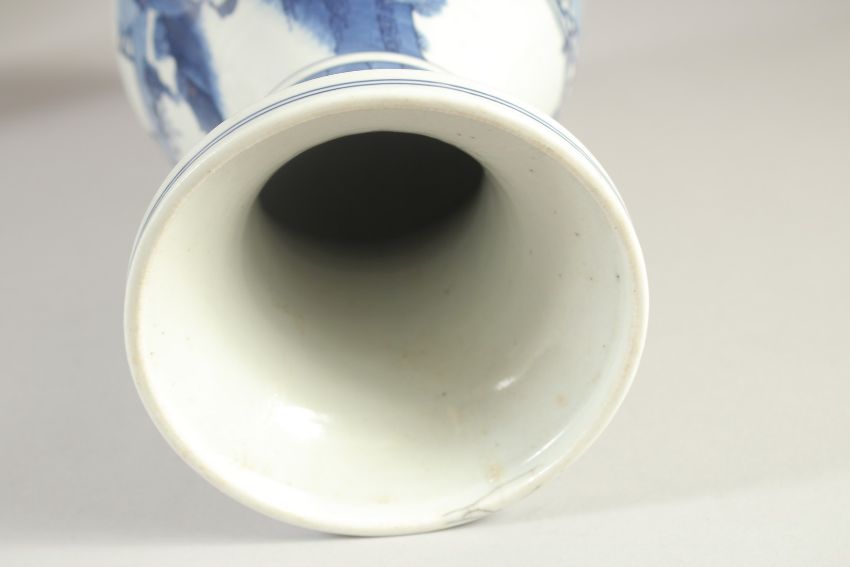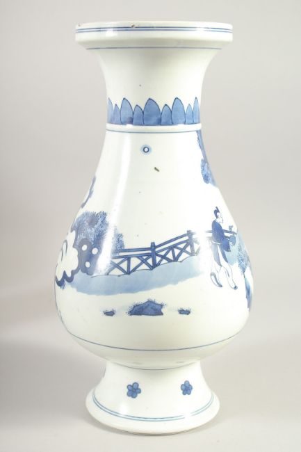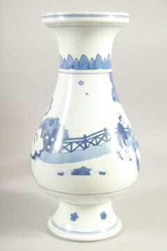 A CHINESE BLUE AND WHITE PORCELAIN VASE, painted with figures in a vase, 35.5cm high.