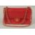 A CHANEL PADDED LEATHER RED HANDBAG, with entwined leather and gilt straps.