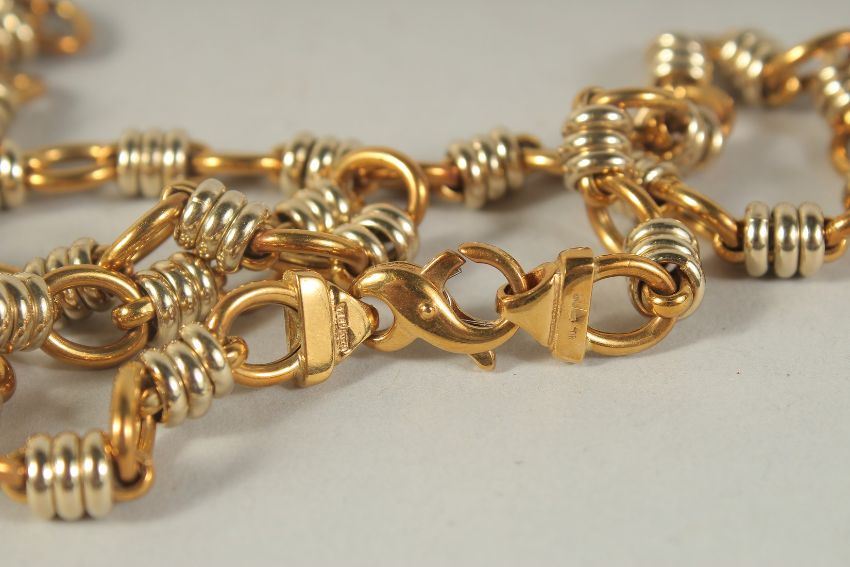 AN 18CT GOLD CHAIN, 24ins long, 43gms.