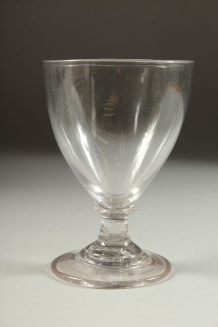 A PLAIN HEAVY 18TH CENTURY GLASS RUMMER.