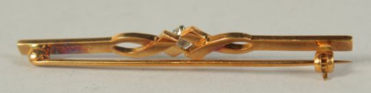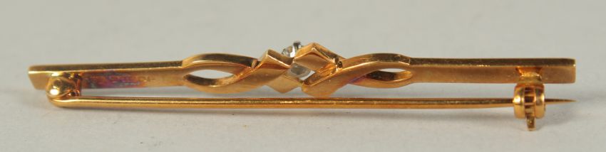 AN 18CT GOLD DIAMOND SET BAR BROOCH.