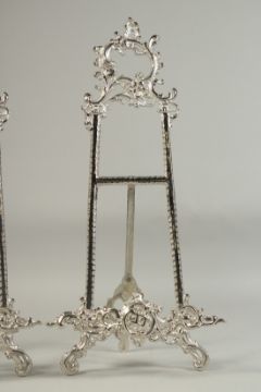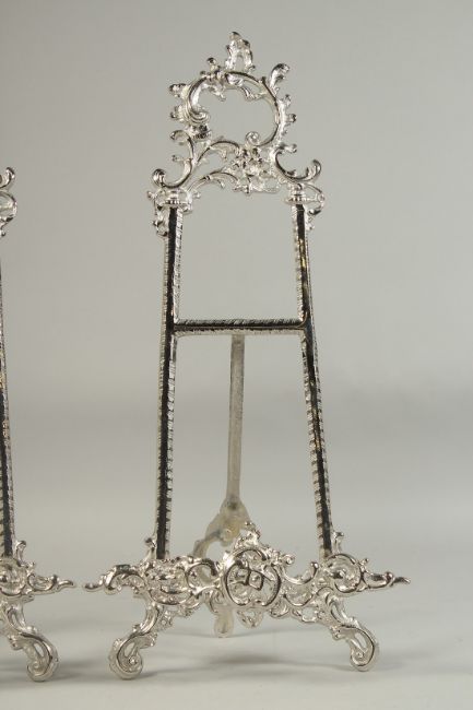 A PAIR OF SILVERED EASELS