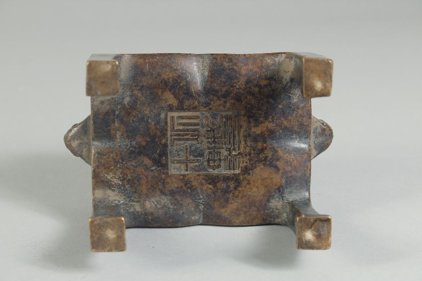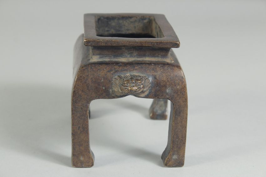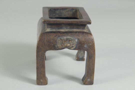 A CHINESE BRONZE RECTANGULAR CENSER on legs.