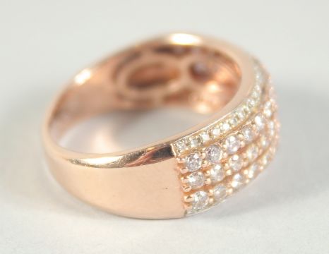 A 14CT GOLD FIVE ROW DIAMOND RING.