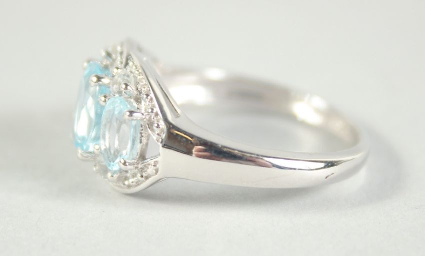 A SILVER AND AQUAMARINE RING.