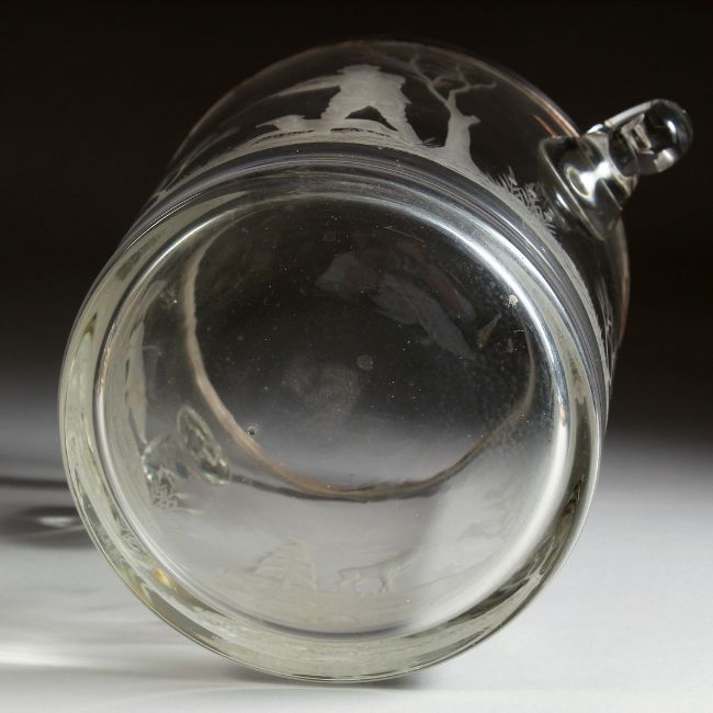 A GOOD CONTINENTAL GLASS ICE BUCKET engraved with a deer with plated rim.