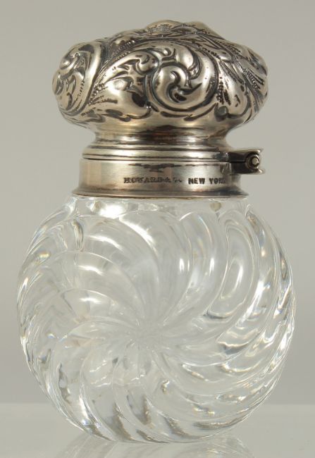 A HOWARD AND CO., NEW YORK, SILVER TOP GLASS INK POT.