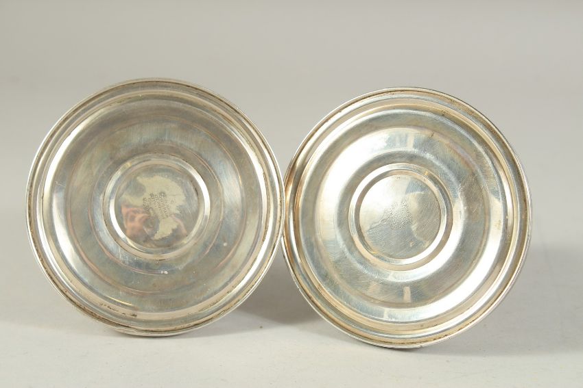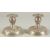 A PAIR OF SILVER EMBOSSED SQUARE CANDLESTICKS.
