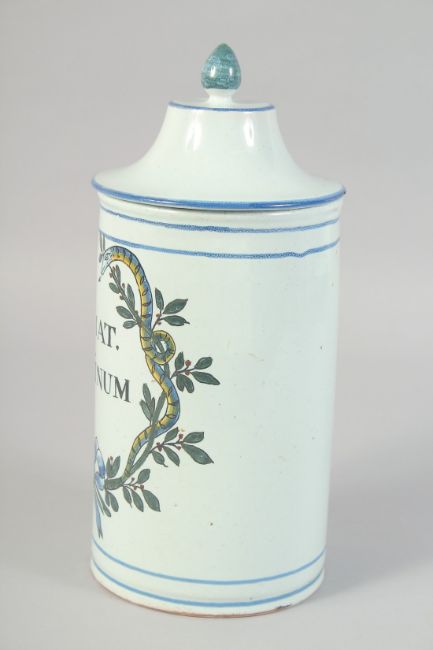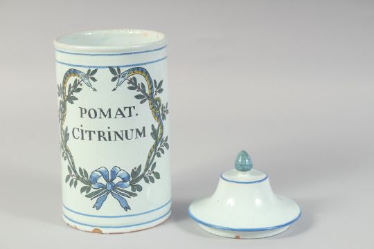 AN 18TH CENTURY CONTINENTAL TIN GLAZE DRUG JAR.
