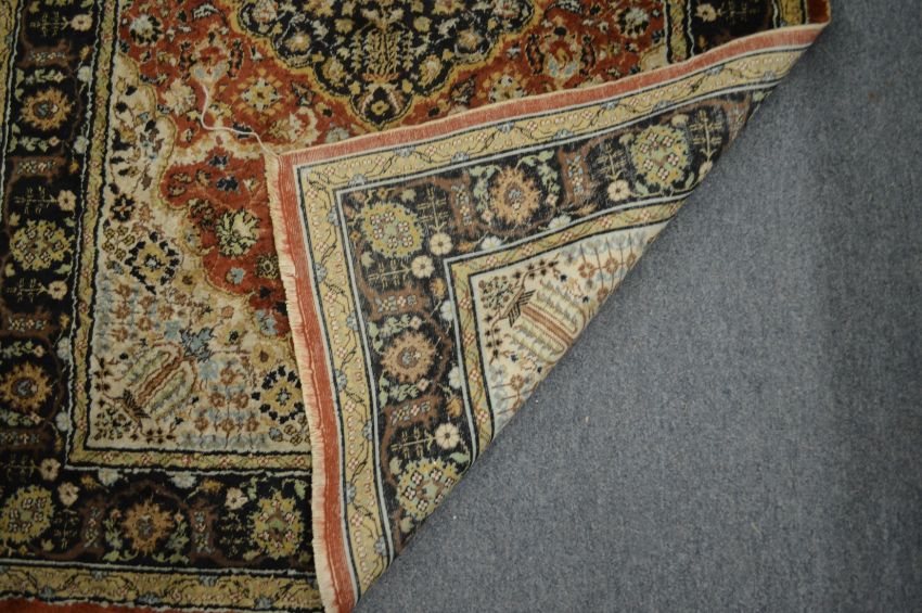 A PERSIAN PART SILK RUG with stylised floral decoration