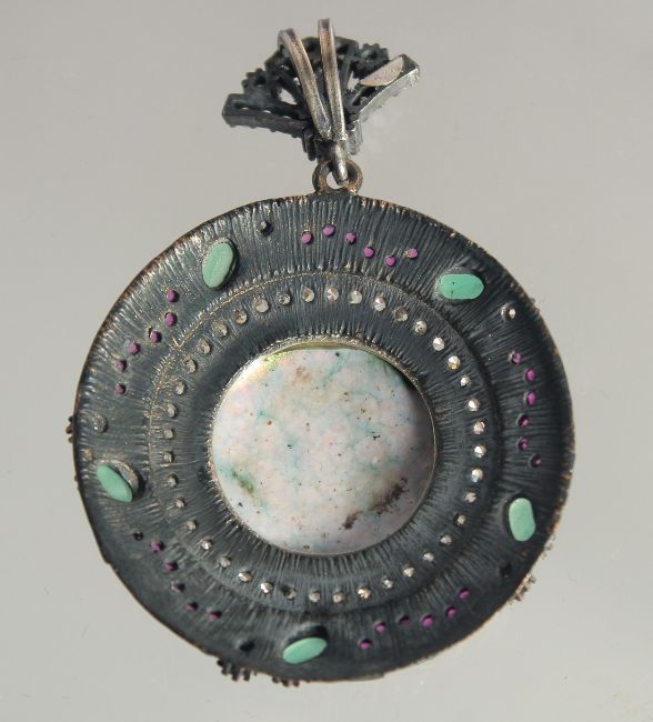 A SILVER AND GILT ENAMEL PENDANT.