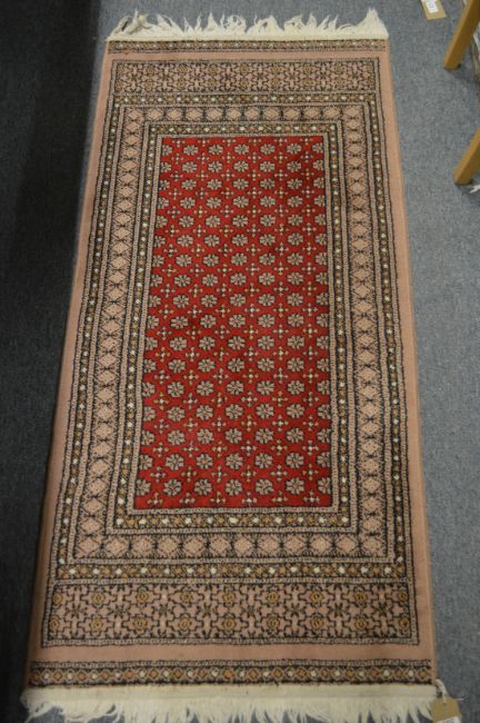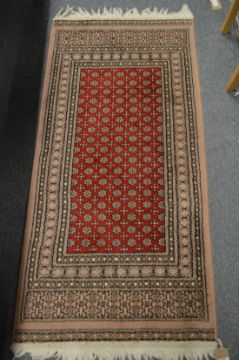 A SMALL MODERN PERSIAN DESIGN RUG, red ground with stylised decoration.