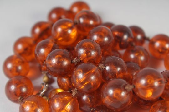 AN AMBER GRADUATED BEAD NECKLACE, 22ns long, 40 beads.