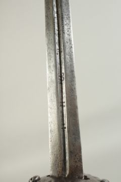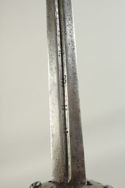 AN ITALIAN OR SPANISH SWEPT HILT RAPIER, 41in diamond section blade with single fuller indistinctly struck with maker's name. Hilt comprising fluted lower plates & 4 pairs of graduated rings with swept quillons & swan necked knuckle bow, chequered pommel & twisted steel wire grip. Second quarter of the 17th century.