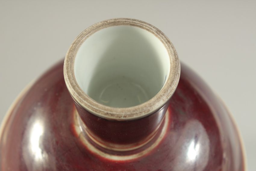 A CHINESE COPPER RED GLAZE PORCELAIN STEM CUP.