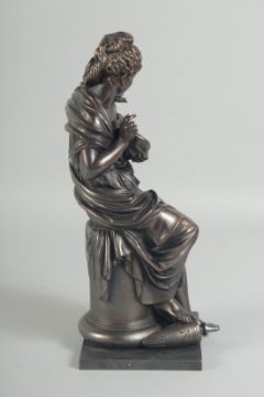 A 19TH CENTURY BRONZE OF A YOUNG GIRL holding a nest of birds.
