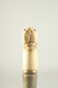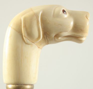 A WALKING STICK with carved bone handle, 'DOG'S HEAD'.