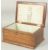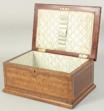 A 19TH CENTURY WOODEN JEWELLERY BOX the lid with a print of a country house.