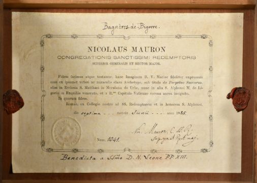 Late 19th Century Continental School, 'Our Lady of Perpetual Help', an icon, oil on gilded and incised wood panel, 21" x 17" (53.5 x 43cm).