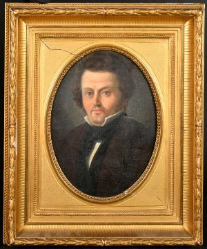 Mid-19th Century Continental School, Portrait of a gentleman wearing a black cravat and waist coat with a brown coat, oil on canvas, 12" x 8.75", (30.5x22cm).