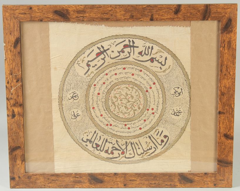 TWO ISLAMIC CALLIGRAPHIC QURAN TEXTILES, framed and glazed, (2).
