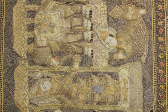 A THAI / BURMESE SEQUIN EMBROIDERED PANEL.