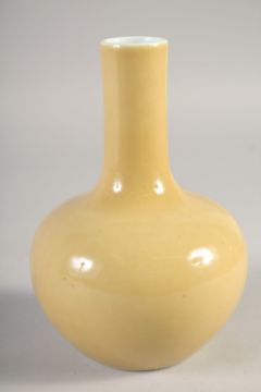 A CHINESE YELLOW GLAZE PORCELAIN BOTTLE VASE, 18cm high.