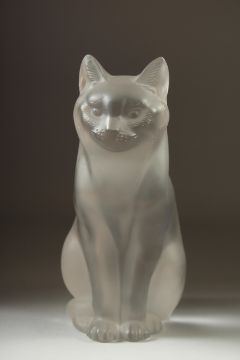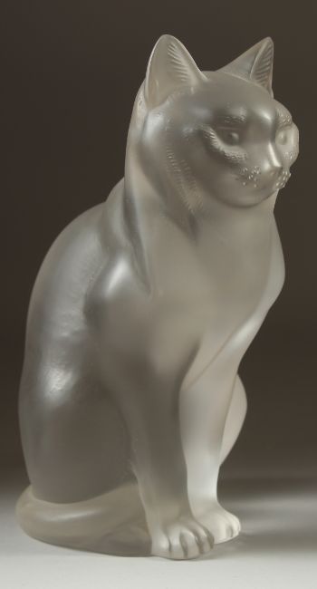 A LARGE LALIQUE FROSTED GLASS SEATED CAT.