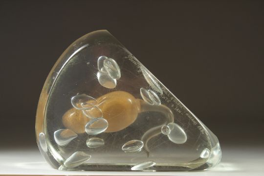 A NOVELTY GLASS CHEESE with a mouse.
