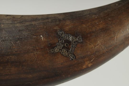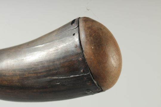 AN EARLY HORN SHAPED POWDER FLASK.
