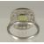 A 9CT WHITE GOLD DIAMOND AND PERIDOT RING.
