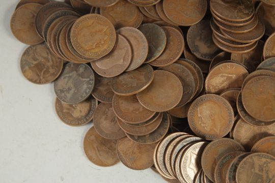 A BAG OF TWO HUNDRED AND THIRTY SIX COPPER PENNIES.
