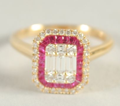 AN 18CT YELLOW GOLD, RUBY AND DIAMOND ART DECO STYLE RING.