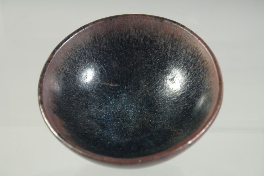 A CHINESE HARE'S FUR GLAZE POTTERY TEA BOWL, 9.5cm diameter.