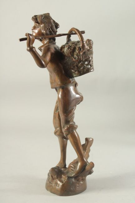 A GOOD BRONZE OF A BOY CARRYING A BASKET on his back.