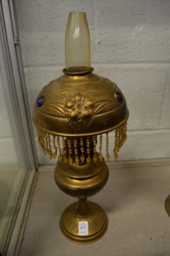 Decorative brass oil lamps.