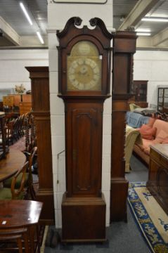 A 19th century mahogany Scottish longcase clock with eight day movement, arched dial signed Alex Semple, Kilmalcolm.